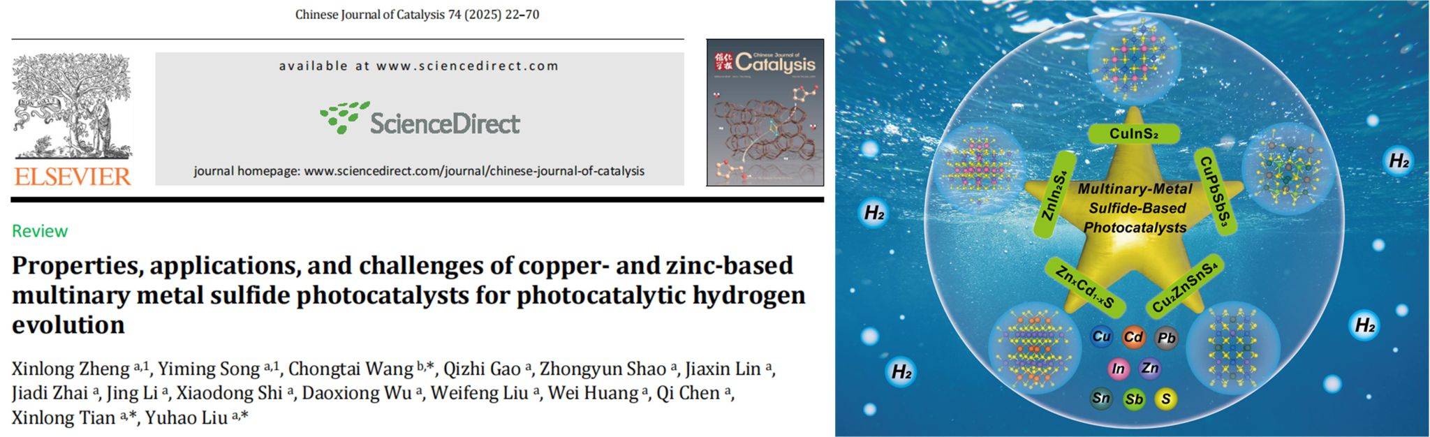 刘雨昊副教授在《Chinese Journal of Catalysis》发表题为《Properties, applications, and challenges of copper- and zinc-based multinary metal sulfide photocatalysts for photocatalytic hydrogen evolution》的综述论文。番茄直播