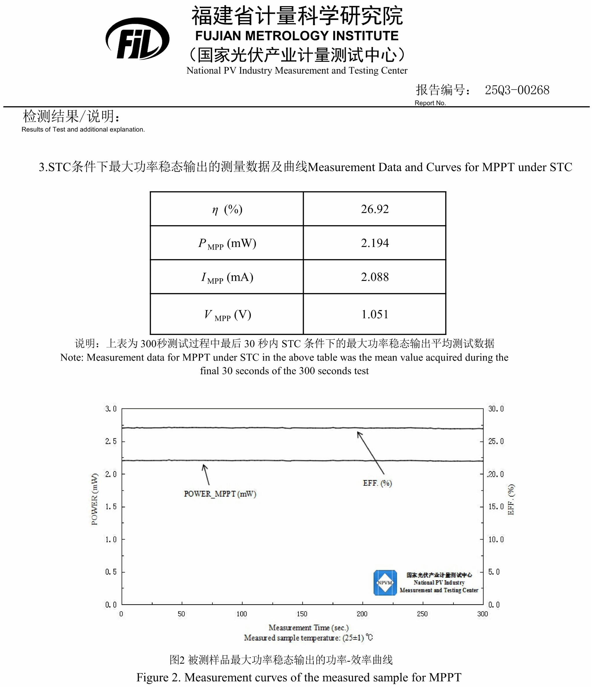 番茄直播 钙钛矿电池效率达26.92%以0.03%微弱差距紧追全球最高纪录
