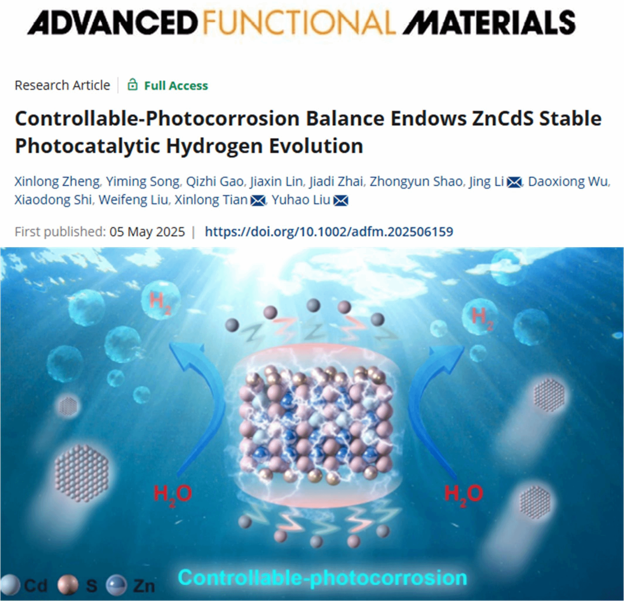 刘雨昊副教授在《Advanced Functional Materials》发表题为《Controllable-photocorrosion balance endows ZnCdS stable photocatalytic hydrogen evolution》的研究论文。番茄直播