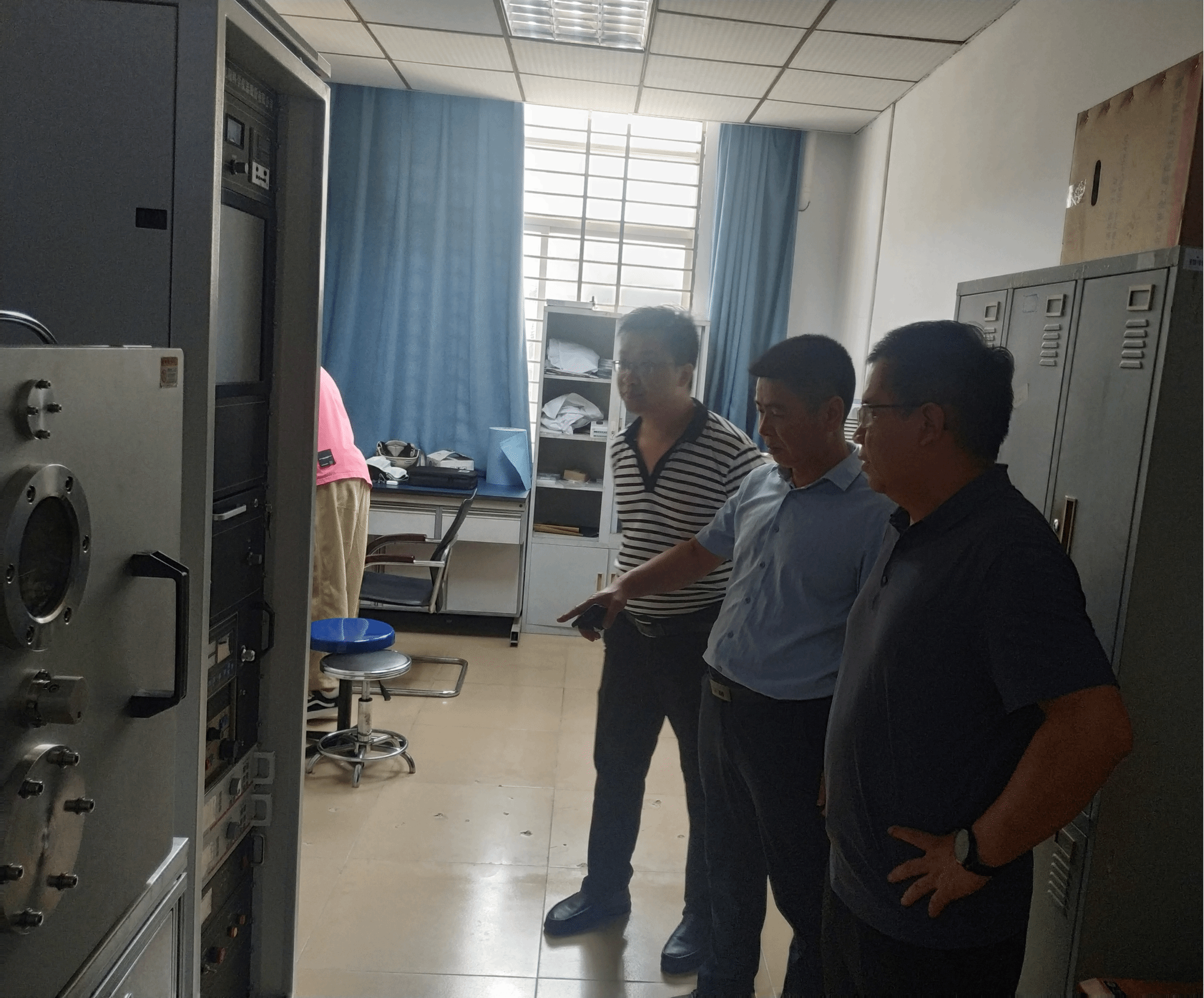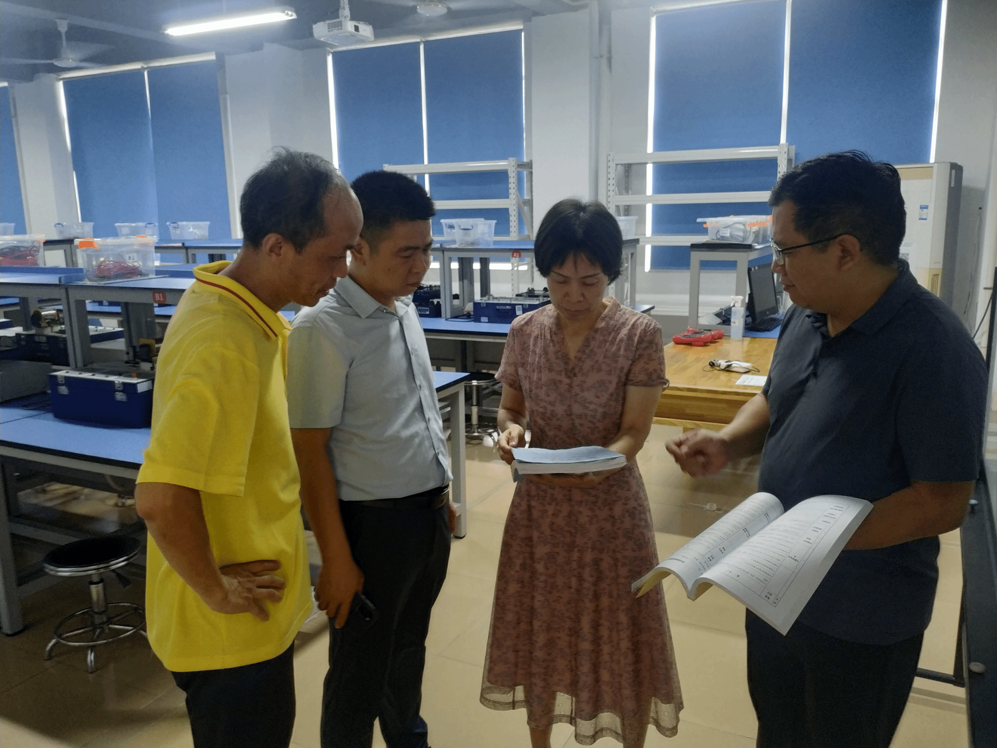 党总支书记黄文强,分管副院长庾名槐带领实验室管理人员对学院公共实验室、专业实验室等进行暑假前实验室安全检查。