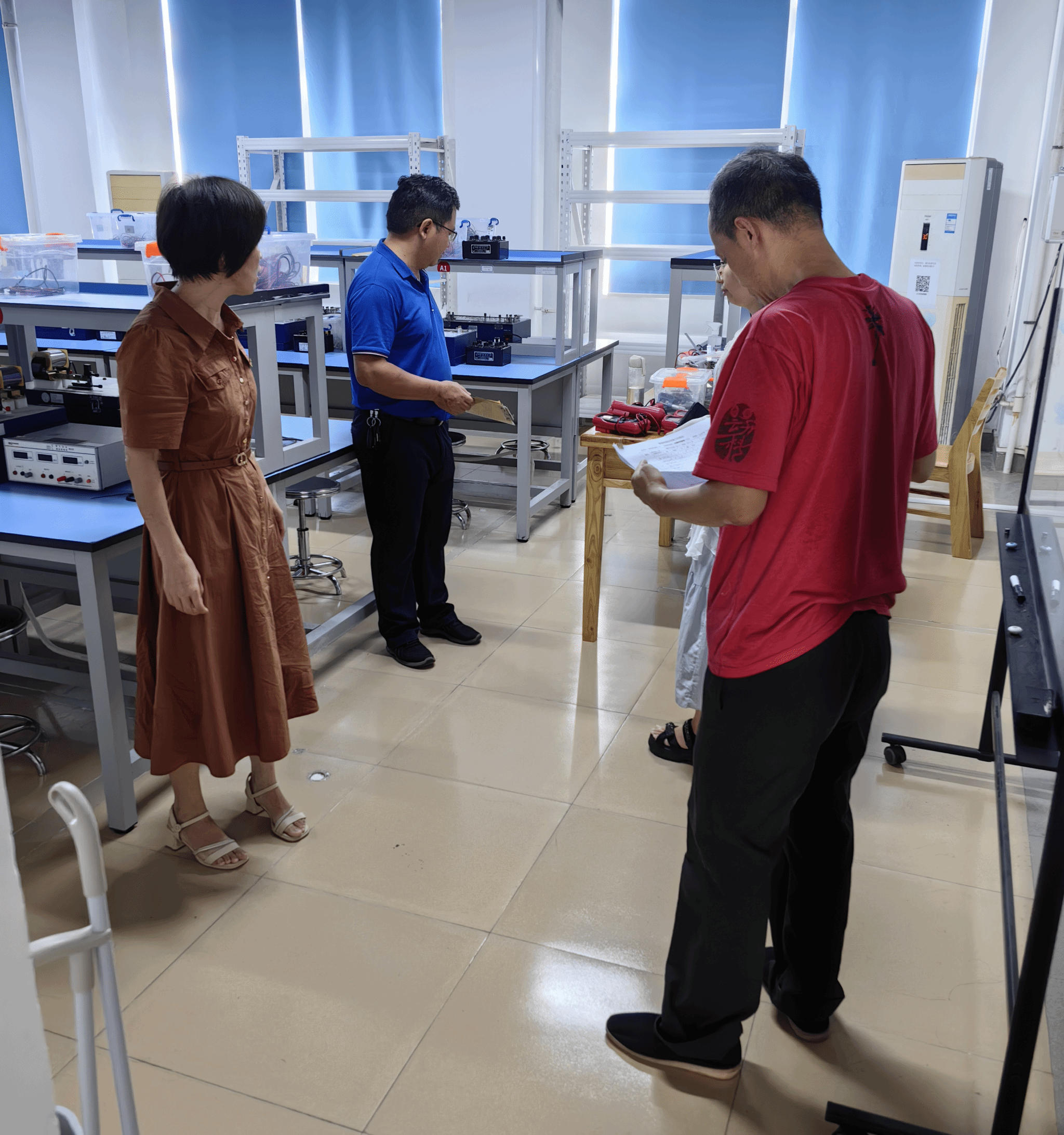 分管领导庾名槐副院长带领实验室管理人员和相关老师对学院公共实验室、专业实验室、科研实验室安全进行了全面细致的检查。为了确保工作完成质量,学院成立了2个检查小组,一组检查公共、专业基础实验室,一组检查7教科研实验室。
