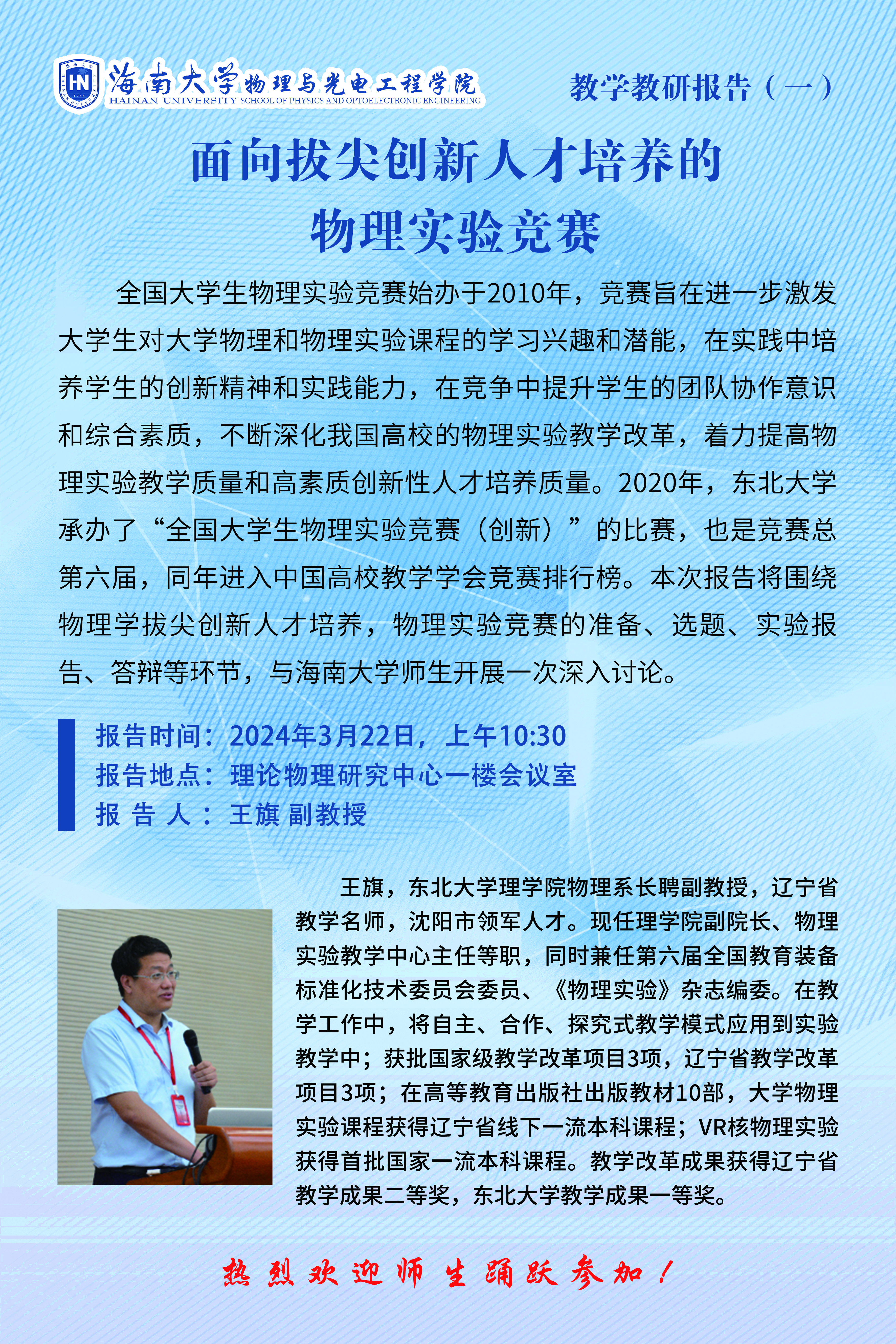教学教研报告(一):面向拔尖创新人才培养的物理实验竞赛