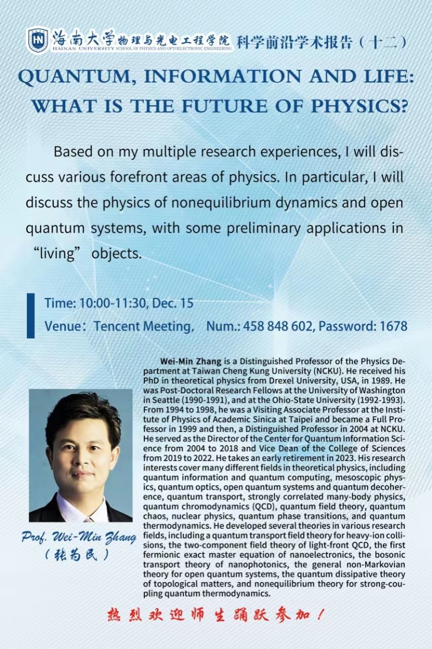 科学前沿学术报告(十二):QUANTUM, INFORMATION AND LIFE: WHAT IS THE FUTURE OF PHYSICS?