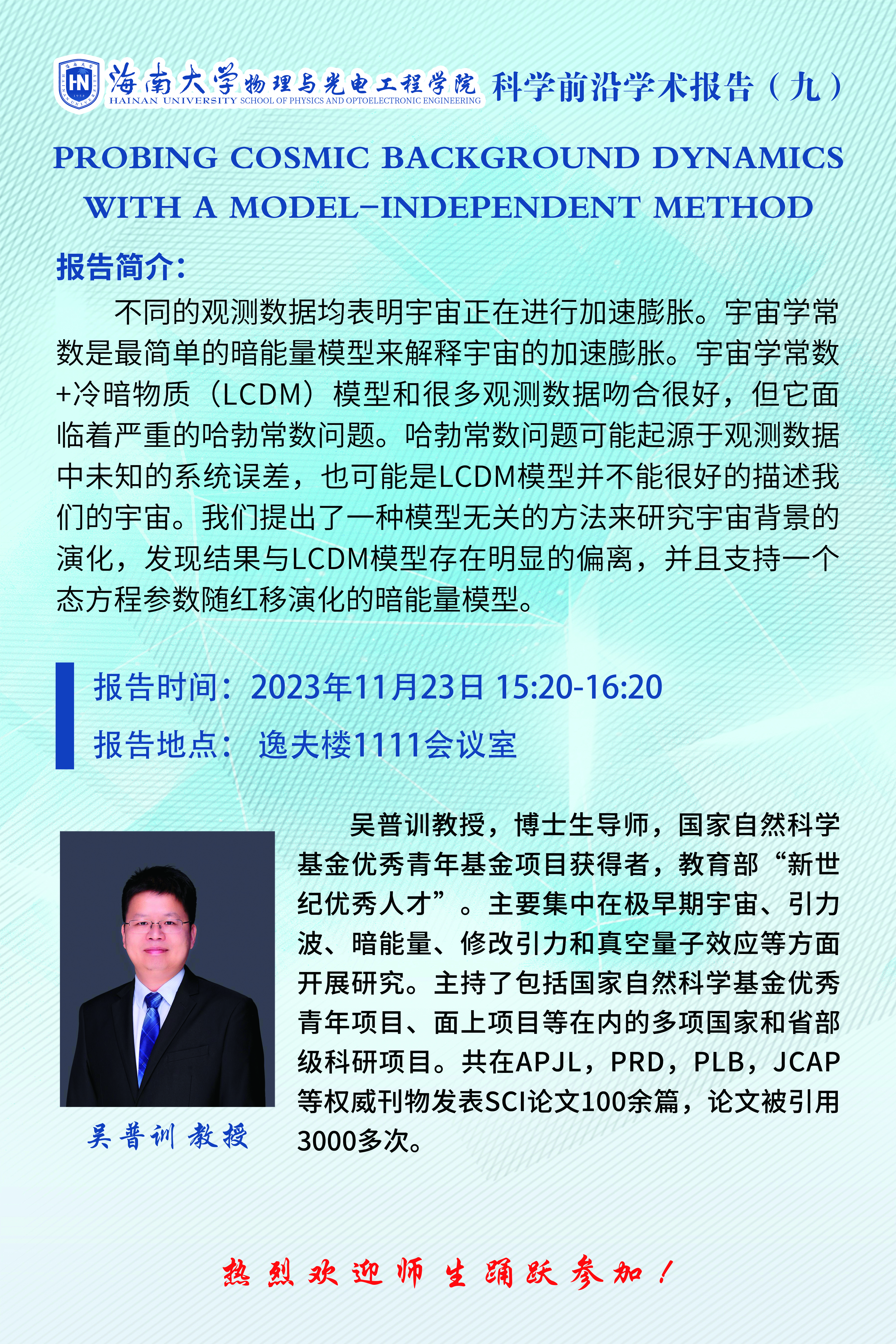 科学前沿学术报告(九):PROBING COSMIC BACKGROUND DYNAMICS WITH A MODEL-INDEPENDENT METHOD
