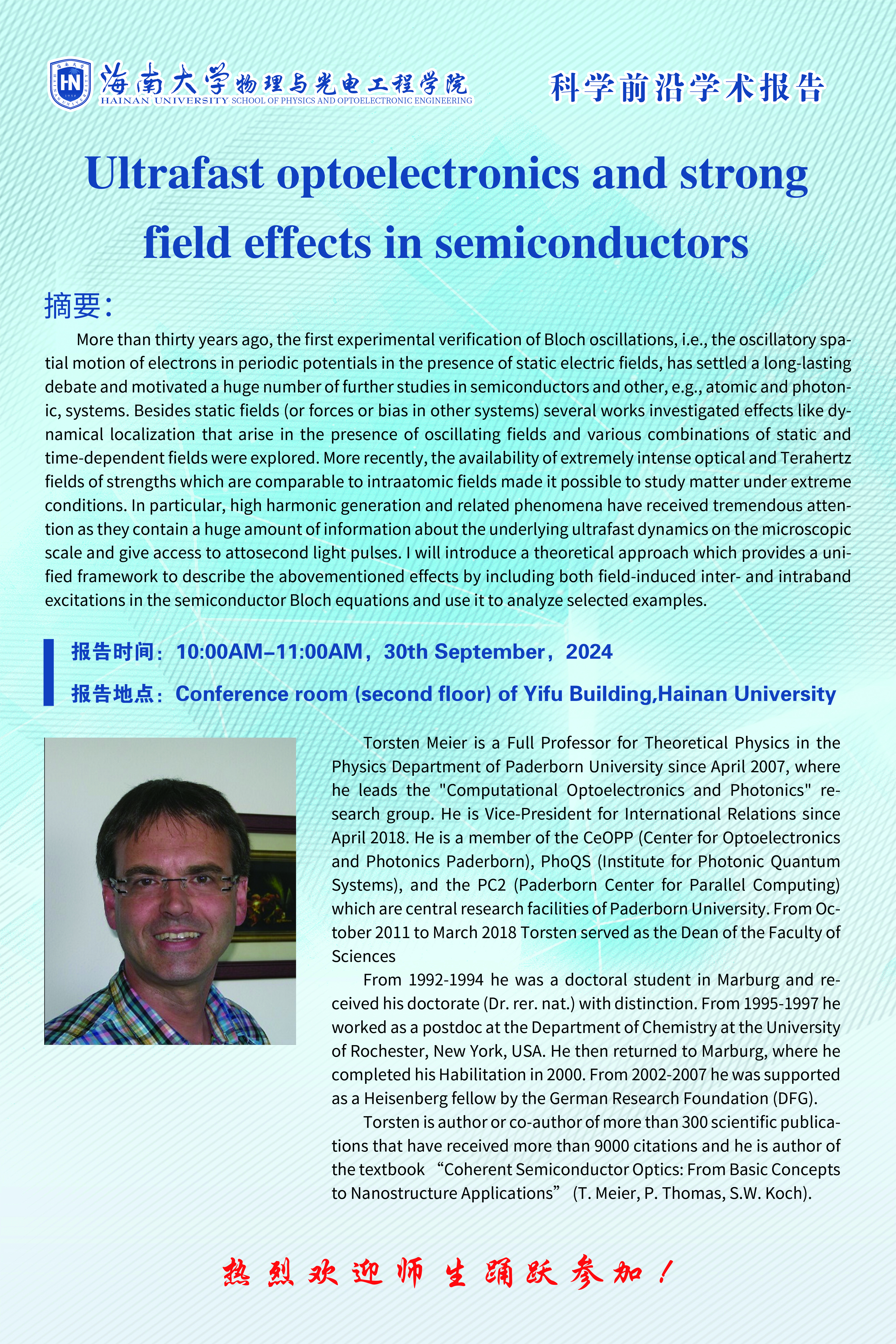 科学前沿学术报告(三十一):Ultrafast optoelectronics and strongfield effects in semiconductors