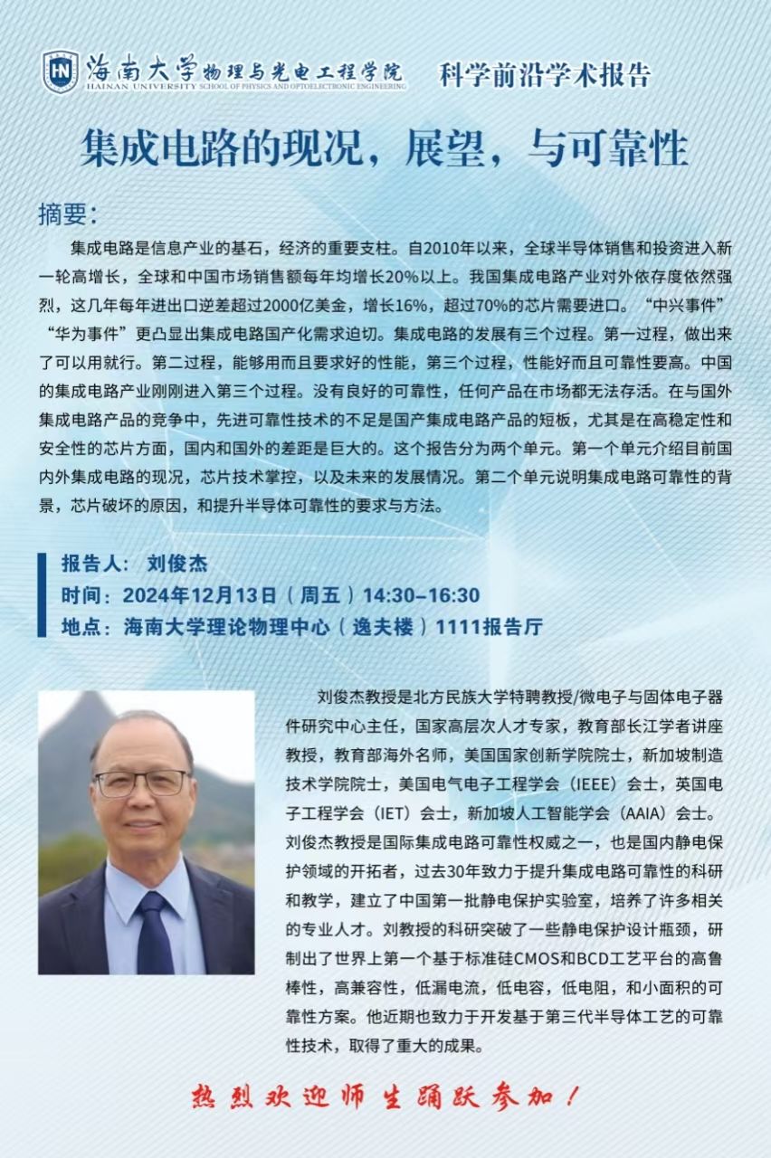 科学前沿学术报告(三十九):集成电路的现况,展望,与可靠性